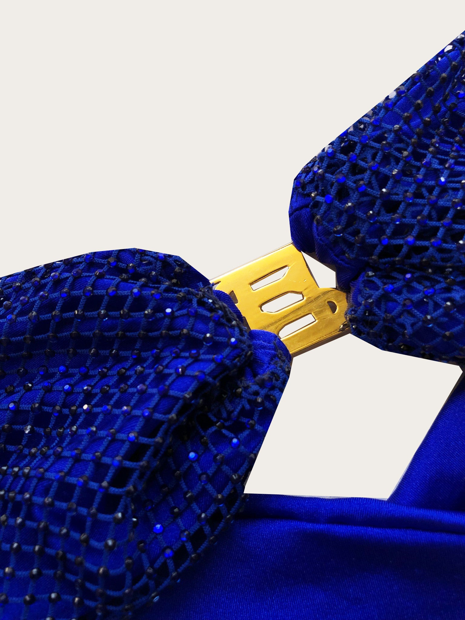The AMALFI top is a bandeau bikini top with folds on the side. It gets tied to the back. It has a gold plated detail, which is our ETERNA monogram, hancrafted by egyptian artisans. The ruching and back tie make the AMALFI top adjustable and flexible to fit different sizes and shapes, it also comes with an additional string to turn your bandeau top into a halter neck top and provide you with more support and an additonal style.