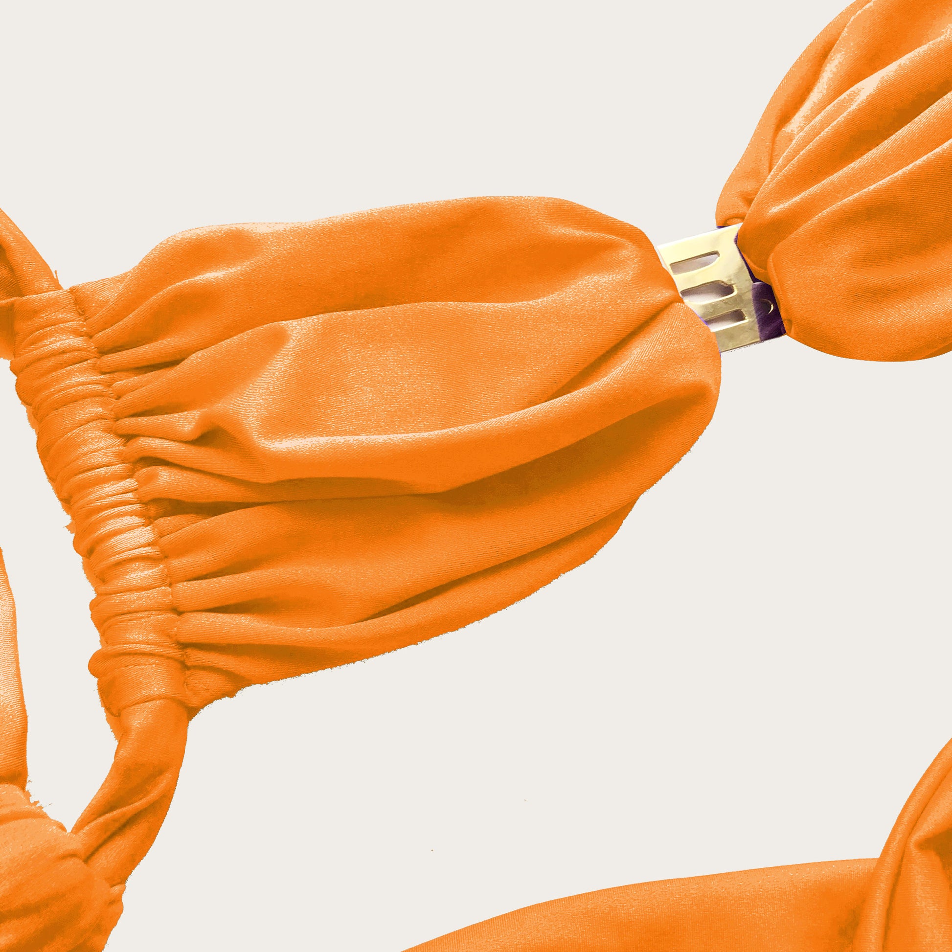 The COTE D’AZUR top is a ruched bikini top with our ETERNA monogram, hancrafted by egyptian artisans. The ruching is adjustable and flexible to fit different sizes, the straps tie are 7cm wide. Fabric with soft sheen.