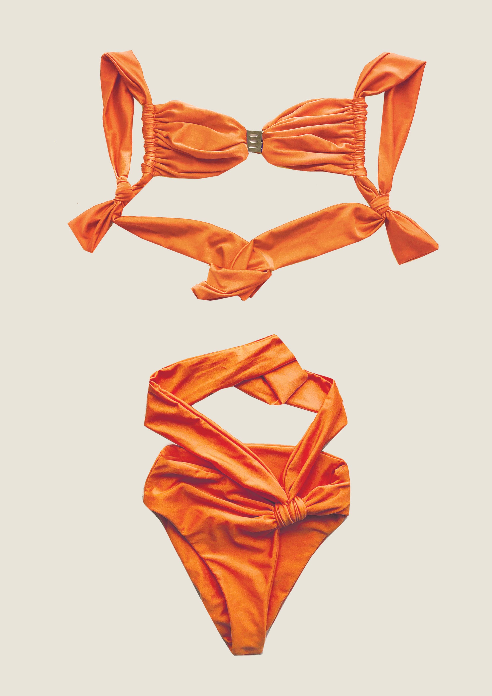 The HAVANNA bottoms incorporate our signature high waisted bottoms hand drapped, with a side knot tie that wraps around the waist and is tied on the back.