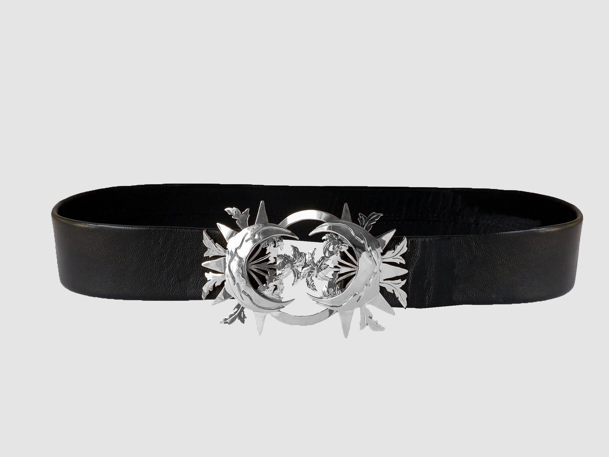 The Celestial Polarity Belt is handmade by local egyptian artisans, the adjustable calfskin belt has a gold plated brass buckle attached to it.